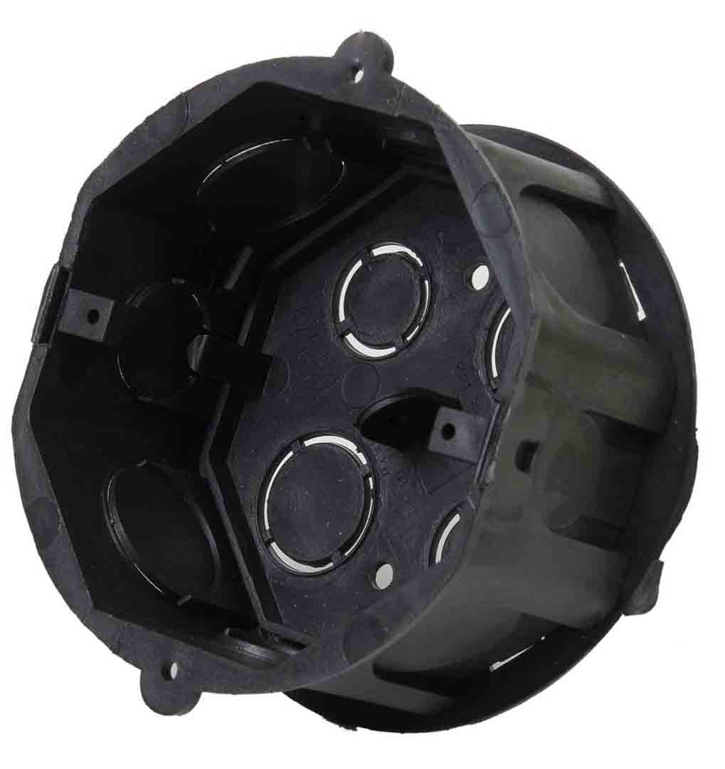 - Caixa de embutir possui entrada destacável de facíl remoção para encaixes de eletrodutos e um sistema exclusivo de encaixe por suportes em aço galvanizado.