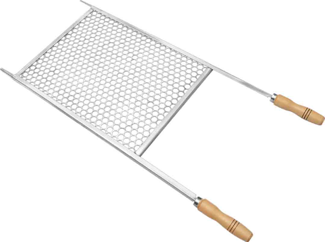 GRELHA INOX 50X50cm C/CABO DE MADEIRA PAPALEGUAS