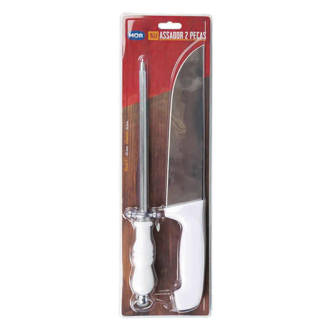 CONJUNTO ASSADOR 2 PCS FACA 9" E CHAIRA MOR