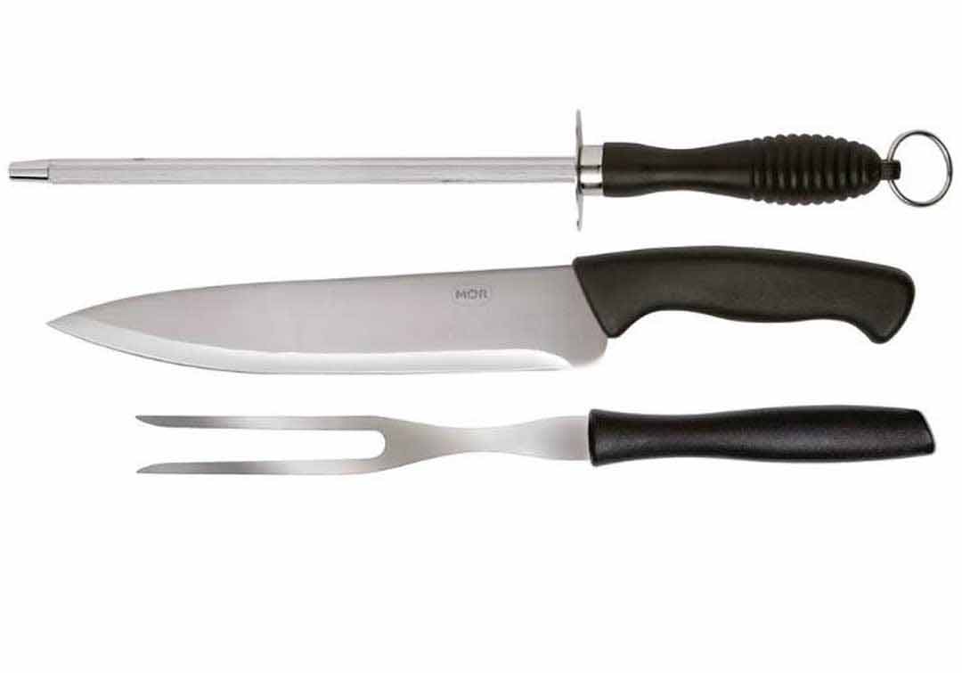 CONJUNTO ASSADOR 3 PCS FACA 8" GARFO E CHAIRA MOR