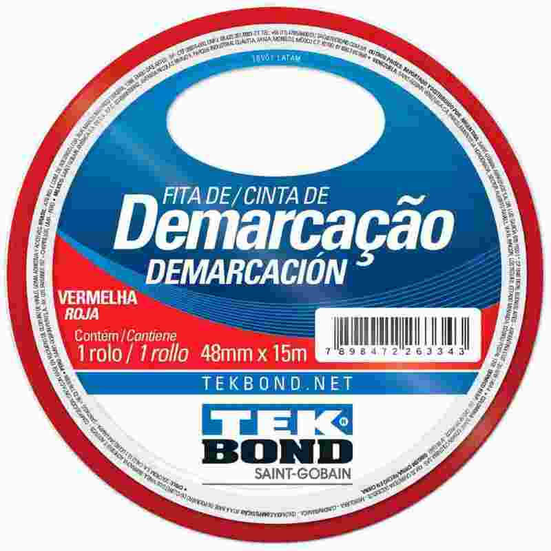FITA DEMARCAÇÃO ADESIVA VERMELHA 48MM X 15M TEK BOND